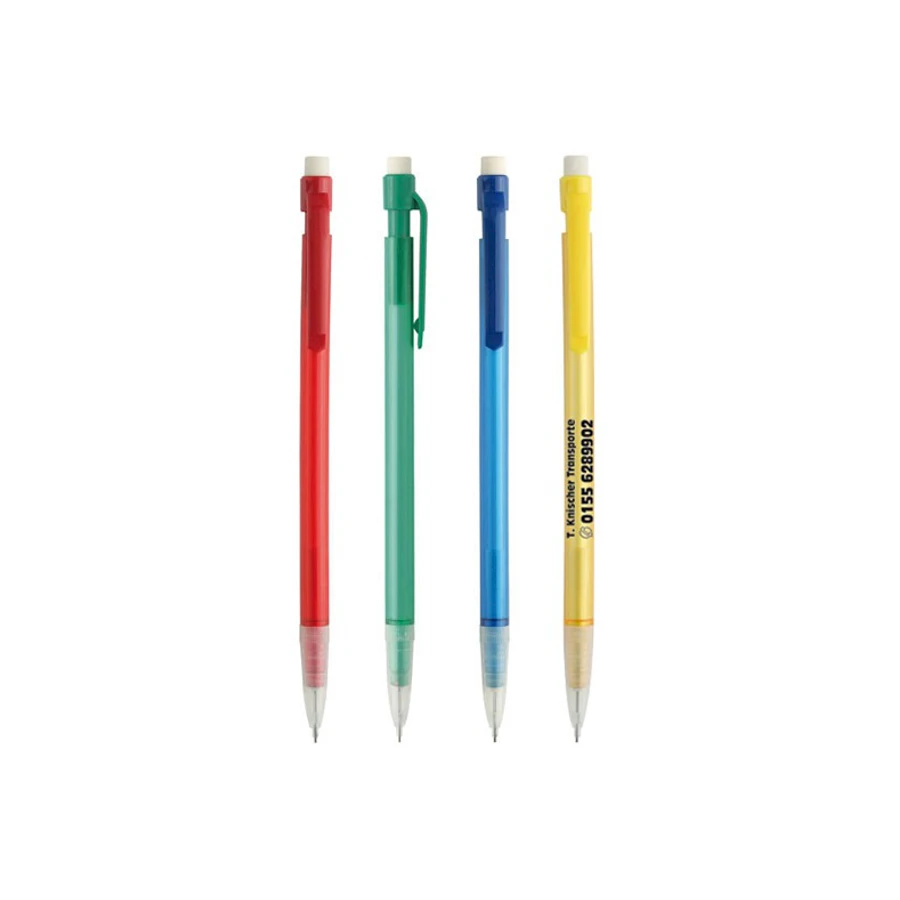 Lyijytäytekynä valkoisella pyyhekumilla. Edullinen lyijykynä kumilla sopii hyvin konferensseihin ja toimistoon. Sisällä 0,7 mm lyijy.