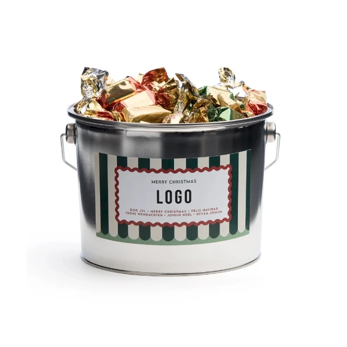 Maalipurkillinen makeisia 1 kg omalla logoetiketillä. Jouluinen metalliäpäri "Maalipurkki" täynnä laadukkatia ja herkullisia joulumakeisia. Metallinen Jouluämmpäri kansineen ja sankoineen on suosittu jouluherkkulahja. Saat yrityksesi joulutervehdyksen painettuna etikettiin.