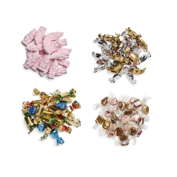 Valitse mieleinen makuvaihtoehto: Vaahtokarkki Joulutontut 1 kg, Joulutoffee Cola 1 kg, Vergani-konvehtisekoitus 1 kg ja Crema Chocolate Praline 1 kg