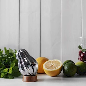 Magisso Bulb -sitruspusertimella puristat tuoretta mehua kaikenkokoisista sitrushedelmistä. Pusertimen pienemmällä päällä puristat sitruunat ja limet, ja pulleammalla päällä appelsiinit ja greipit. Design sitruspuristin on paitsi käytännöllinen myös kaunis keittiön sisustuselementti. Sitruspuristin on ergonomisesti muotoiltu ja sen käyttäminen on helppoa. Se on valmistettu kiillotetusta ruostumattomasta teräksestä ja alusta on puunsävyistä bambua. Bambualustan puhdistukseen riittää kostea liina ja mieto puhdistusaine. Pusertimen voi pestä astianpesukoneessa. Pusertimen on suunnitellut Simon Stevens. Koko: 72 x 118 puristin, 55 x 2 mm alustaMateriaali: ruostumaton teräs/bambu