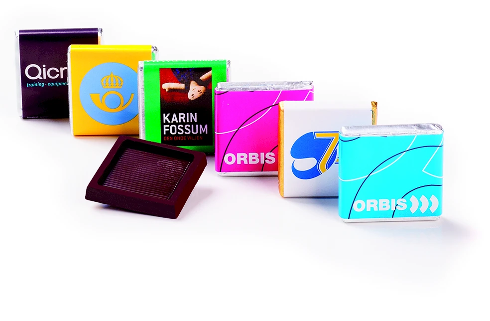 Suklaapalat omalla painatuksella sopivat kampanjatuotteiksi esimerkiksi messuille, konferensseihin ja kokouksiin. Suklaaneliöt ovat erityisen suosittuja mainosmakeisia ravintola ja hotellialalla. Pyydä tarjous omasta toteutuksesta ja pakkauksesta. Suklaapalat 5 gr. Makuina Dark ja Milk.