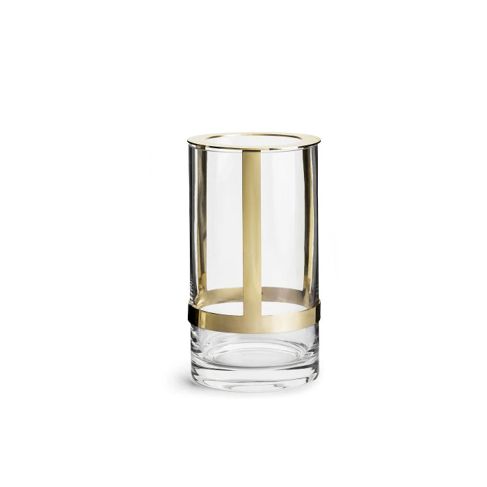 Pascal Charmolun muotoilema uniikki suupuhallettu lasimaljakko, jonka korkeutta voidaan säädellä kullanväristä metallipidikettä siirtämällä. Maljakko antaa siten hyvän tuen myös korkeille leikkokukille.Väri: läpinäkyvä/kultaMateriaali: metallia/suupuhallettua lasiaKoko: H 150 mm, paino 1,143 kg