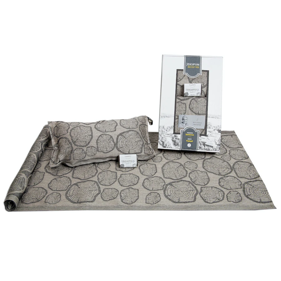 Jokipiin Pellavan mänty laudeliina, saunatyyny & tervasaippua lahjarasiassa on ihana kotimainen kesälahja. Mänty-laudeliina, saunatyyny kuuluvat Vappu Saunassa -mallistoon, joka huokuu rauhallista tunnelmaa ja luonnonläheisyyttä. Pirteä tervasaippua tuo aisteihisi suomalaisen mäntymetsän. Valmistettu Suomessa.