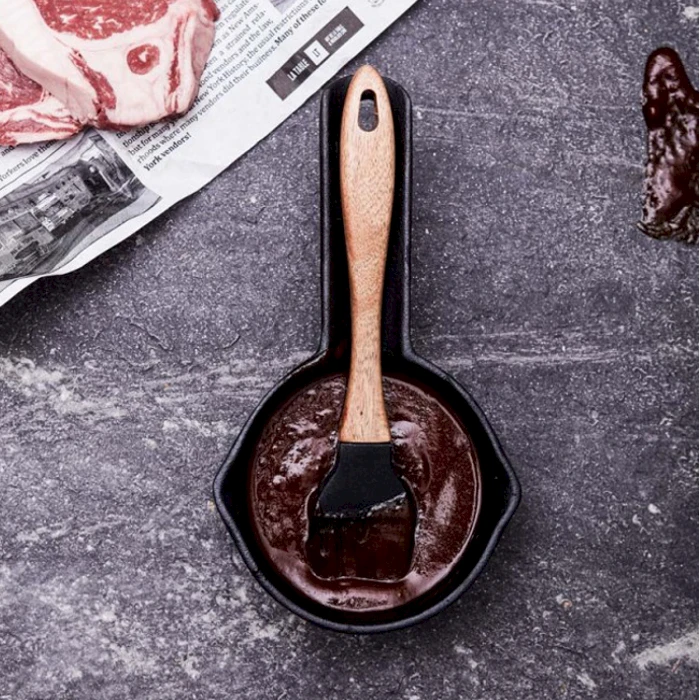 Marinadisetti, johon kuuluu valurautainen kattila sekä puusta ja silikonista valmistettu marinadisivellin. Tässä kattilassa voin sulattaminen sujuu helposti, lisäksi setti soveltuu erinomaisesti marinadien, glaseerauksen ja lämpimien kastikkeiden valmistamiseen. Kattilan voi laittaa suoraan uuniin, grillin tai hellaan päälle. Valurautainen kulho toimii loistavasti myös induktioliedellä. Marinadisiveltimen puhdistaminen on helppoa. Silikoniosan voi irrottaa ja pestä astianpesukoneessa.