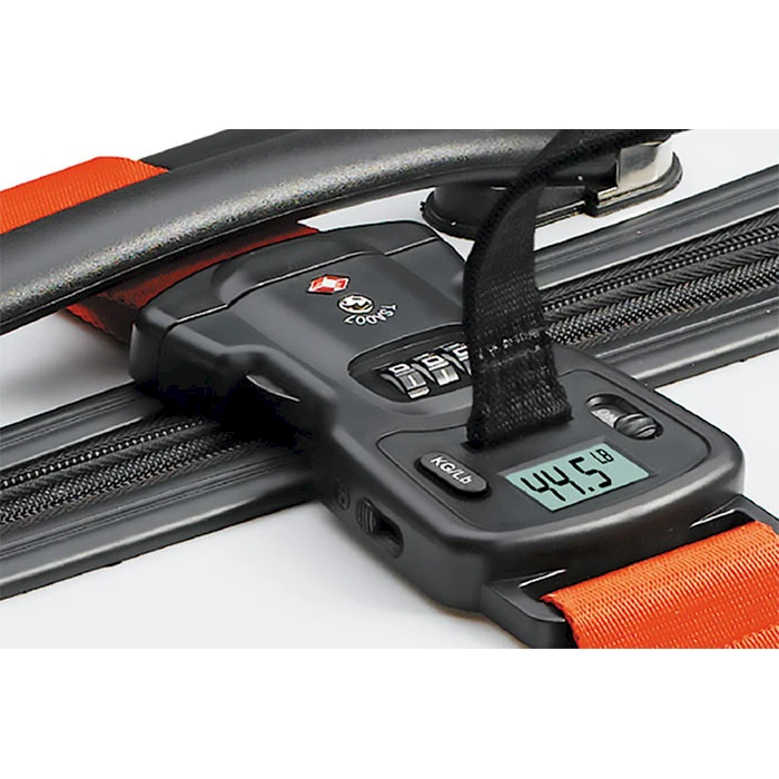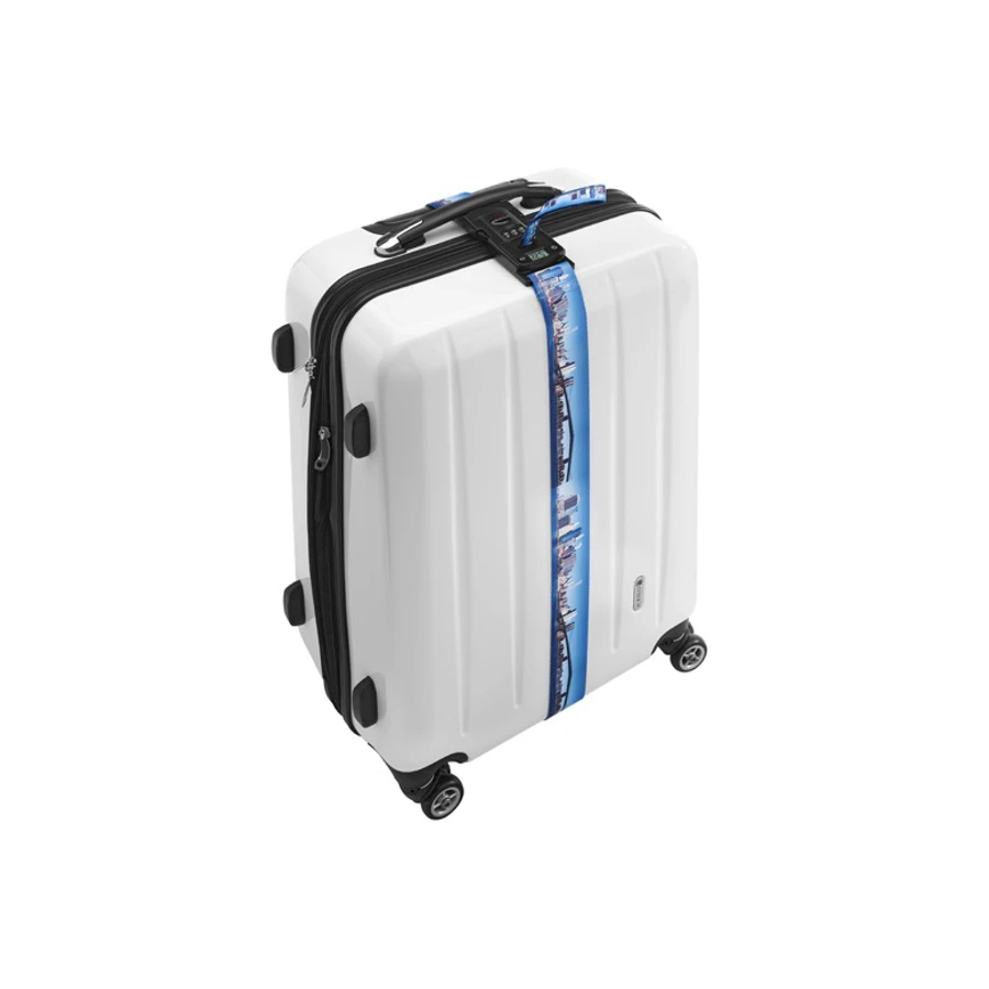Matkalaukkuvyö jonka soljessa on vaaka ja TSA-lukko. Vyön soljessa olevalla vaa'alla punnitset helposti matkalaukun painon ennen matkalle lähtöä. Saat suljettua vyön kolminumeroisella lukolla. Patentoitu TSA-lukko mahdollistaa viranomaisia tarkastamaan matkatavarasi ongelmitta. Saat matkalaukkuvyöhön ja solkeen näyttävän mainospainatuksen jolla erotat matkalaukkusi helposti muiden laukkujen seasta. Matkalaukkuvyö ja pakkaus voidaan tehdä kokonaan omana designina omilla väreillä. Pakkausvaihtoehdot sellofaani, postituspakkaus tai lahjapakkaus. Pyydä tarjous omasta toteutuksesta.Materiaali: polyesteriKoko: 5 cm x 200 cm