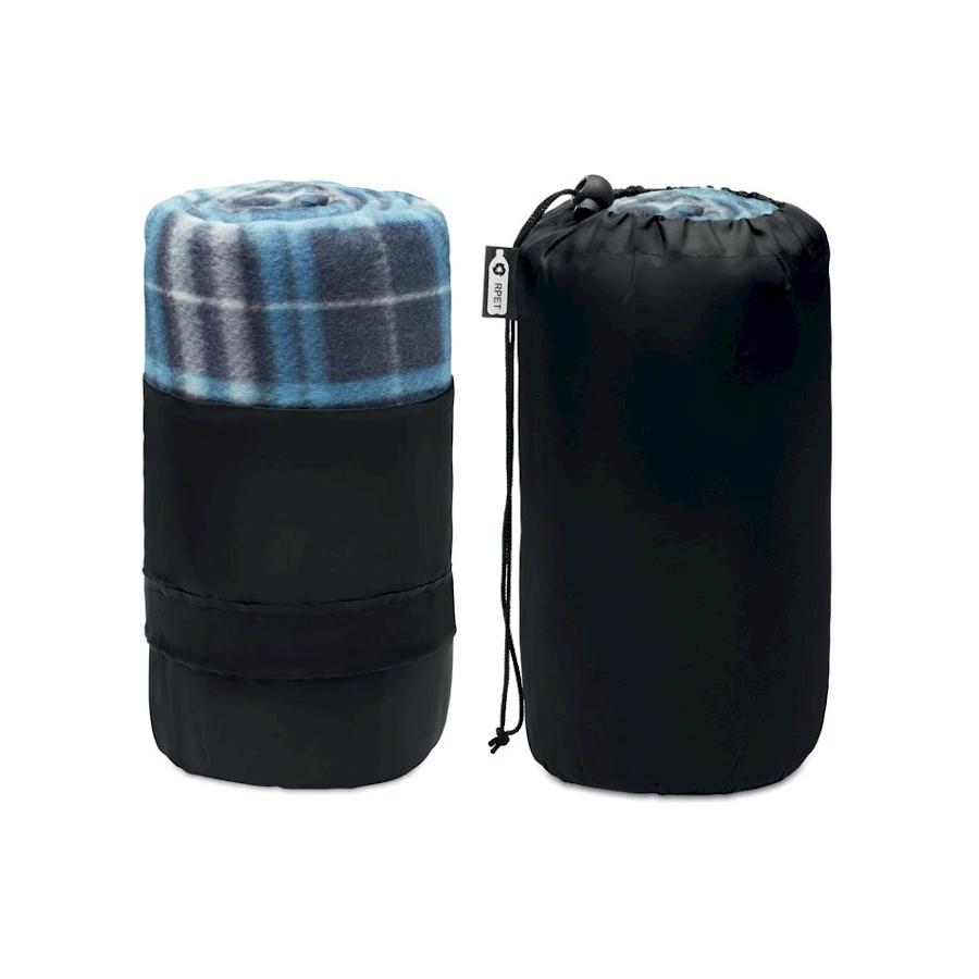 Pehmeä fleecehuopa lämmittää matkalla tai ulkoterassilla. Ruutukuvioitu pehmeä rPET matkapeitto toimitetaan kätevässä pussukassa. Kevyen fleecehuovan pakkaat helposti mukaan rPet pussukkaan.