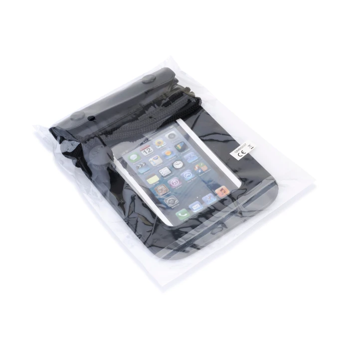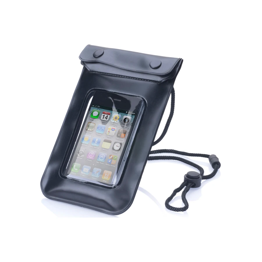 Kaulassa kannettava matkapuhelinsuoja. Paksusta muovista valmistettu vesitiivis tasku suojaa matkapuhelintasi pölyltä, lialta ja sateelta. Läpinäkyvä suojatasku mahdollistaa puhelimen käytön taskun läpi. Kaulanauhassa turvalukko. Väri: mustaKoko: 17 x 11 x 1.5 cm