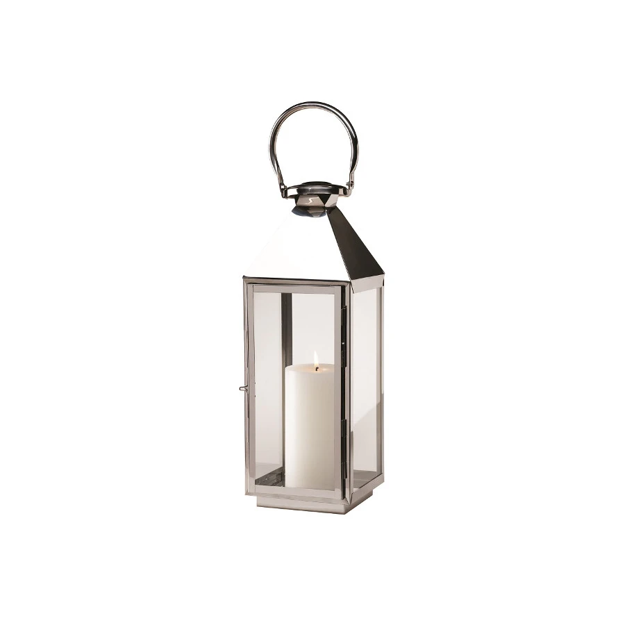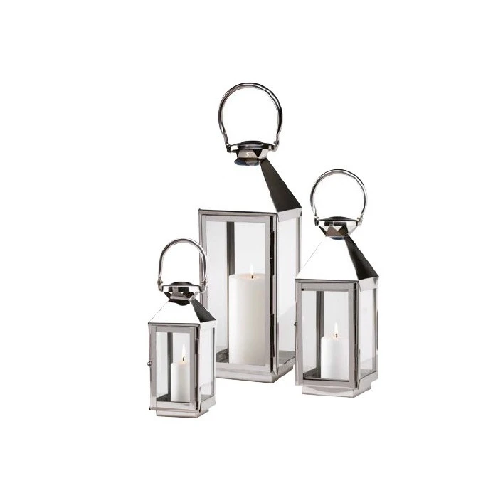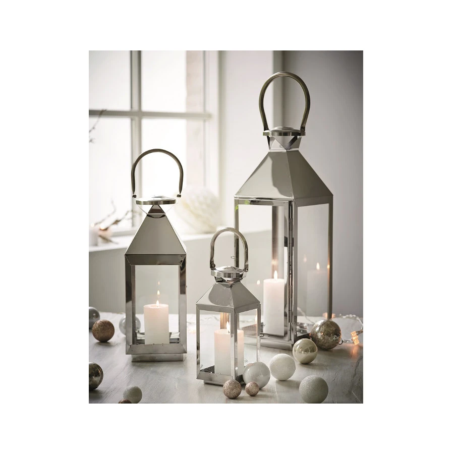 Hohtavan kaunis metallilyhty. Lyhdyssä on tukeva kahva, Materiaali ruostumatonta terästä. Lahjapakkaus. Koot 27 cm, 42 cm, 53,5 cm korkea. Väreinä kromi, kupari, musta. Logokaiverrus eteen alas.