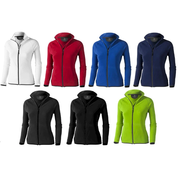 Naisten kevyt mikrofleecetakki vetoketjulliset sivutaskut. Hihansuissa peukaloaukot. Satiini niskanauha. Väreinä valkoinen, punanen, sininen, navy, vihreä, t.harmaa, musta. Koot XS - XXL. Miehille vastaava oma malli.