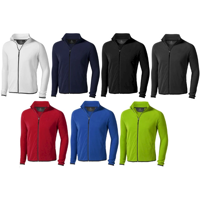 Miesten kevyt mikrofleecetakki vetoketjulliset sivutaskut. Hihansuissa peukaloaukot. Satiini niskanauha. Väreinä valkoinen, punanen, sininen, navy, vihreä, t.harmaa, musta. Koot XS - XXXL. Naisille oma vastaava malli.