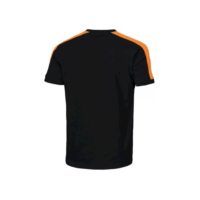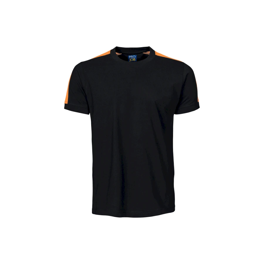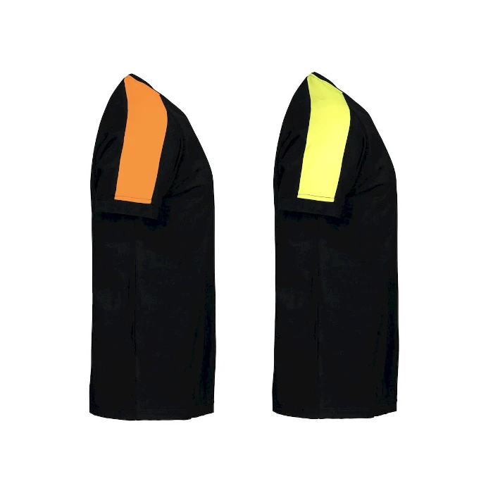 Puuvillainen t-paita, jonka olkapäillä fluerosoivaa kangasta.