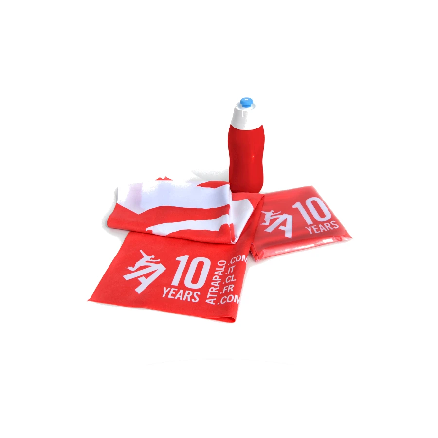Aktiivisen liikkujan tai vapaa-ajan harrastajan sporttipyyhe. Mikrokuitupyyhe sopii mukaan golfkentille, salille, rannalle, pyörälenkille, retkelle tai vaikkapa autoon. Mikrokuitupyyhe kuivuu nopeasti ja on mukavan pehmeä. Omalla kuvalla ja logolla varustettu mikrokuitupyyhe on ainutlaatuinen piristys arkeen.