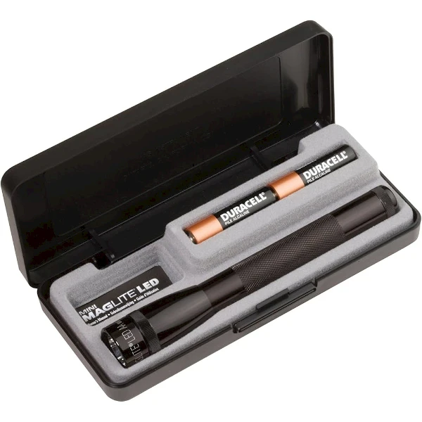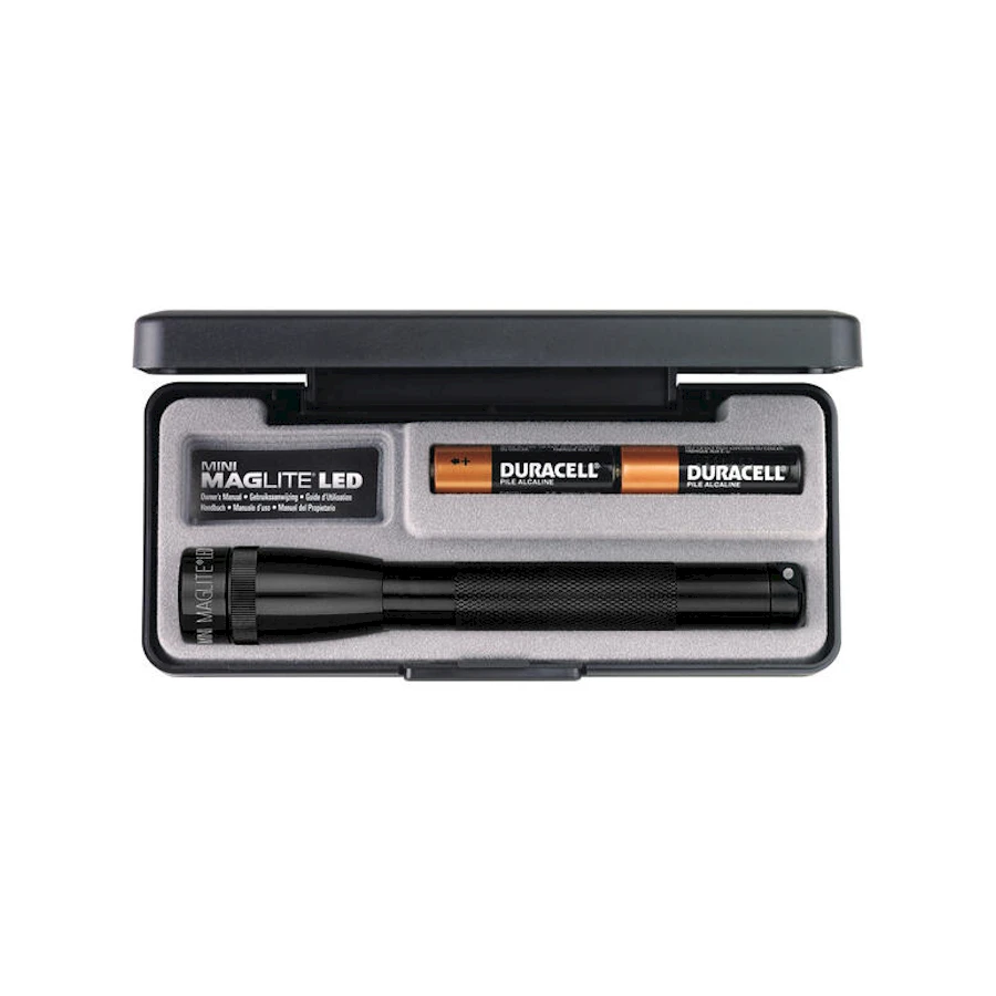 Mini Maglite LED 2AA taskuvalaisin. Kevyt, pieni ja erittäin tehokas 2nd Generationin LED valaisin uudella LEDillä. MagLite taskuvalaisimessa uusi kytkin ja uutuutena säädettävä valoteho, vilkku ja hätävilkku. LED-valaisimeksi poikkeuksellisen leveä hajavaloalue kaikissa säätöasennoissa. Taskulamppu on roisketiivis ja iskunkestävä. Takuu 10 vuotta. Lahjalaatikko. Mukana paristot.