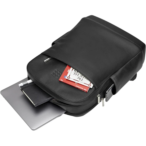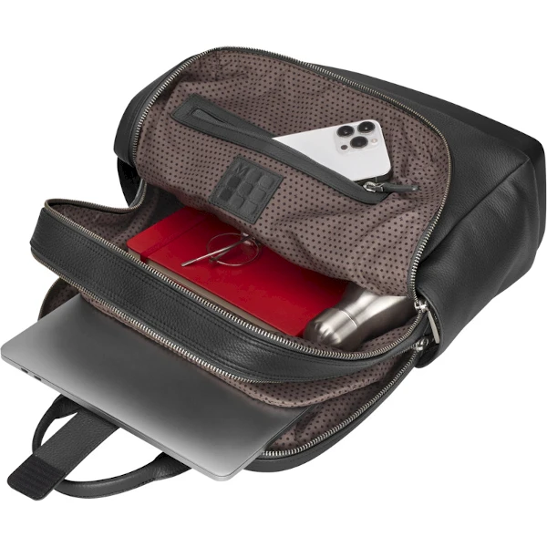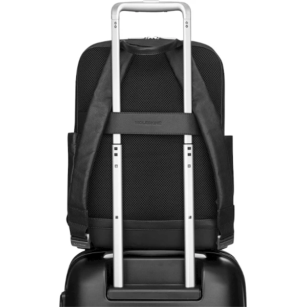 Moleskine Classic Pro nahkareppu. Cassic Pro -nahkareppu on tyylikäs matkakumppani, jossa on runsaasti tilaa työssäsi tarvitsemiesi tavaroiden järjestämiseen. Repussa on 2 lokeroa kannettavalle tietokoneelle ja henkilökohtaisille tavaroille, takaosassa hengittävä ja viilentävä verkkokangas, jonka ansiosta reppua on mukava kantaa reissussa ollessa, helposti käytettävä etutasku sekä säädettävät repun hihnat. Sisäpuolella on lisäksi useita taskuvaihtoehtoja. Muistiinpanotasku ideoiden tallentamiseen, 1 turvallinen vetoketjullinen tasku sekä 1 järjestelijätasku, jossa on 2 kynäpidikettä ja käyntikorttitasku. Läppärilaukkuun sopii 15-tuumainen tai sitä pienemmät elektroniset laitteet. Valmistettu EU:ssa.
