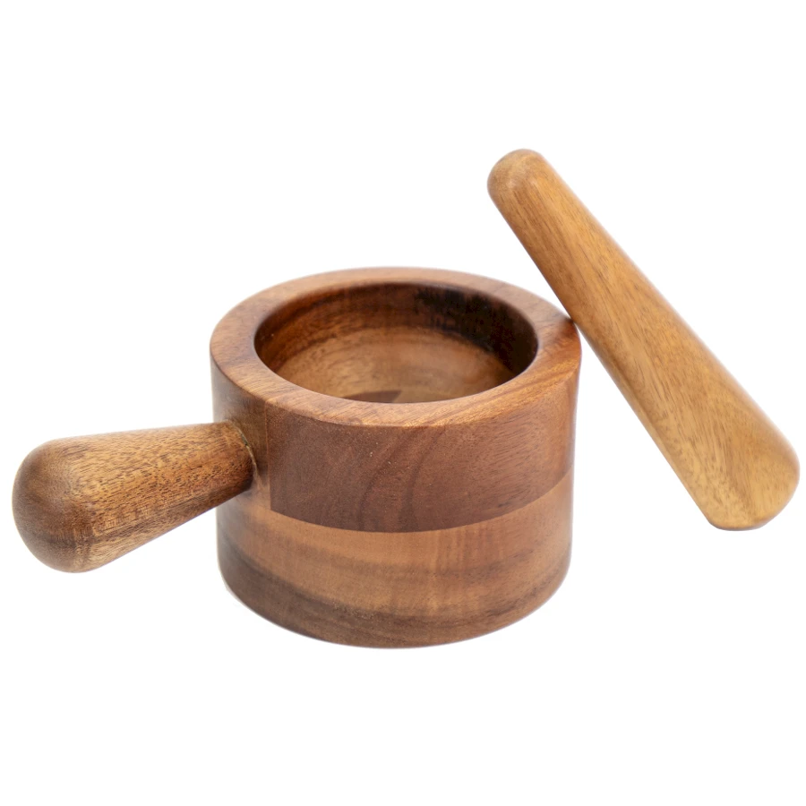 Täydellinen mortteli puusta. Puisessa morttelissa on kätevä kahva, josta saat tukevan otteen. Puinen käsimortteli on miellyttävän kevyt ja se on 11,5 cm halkaisijaltaan ja 8 cm korkea. Väri: puuMateriaali: akaasiapuuKoko: 8 korkea x Ø 11,5 cm