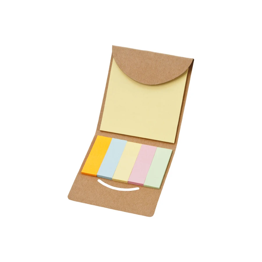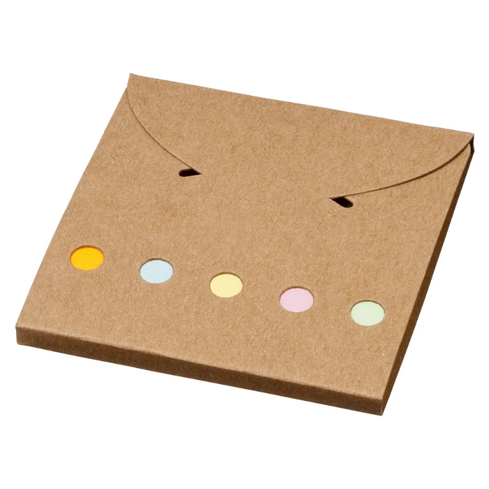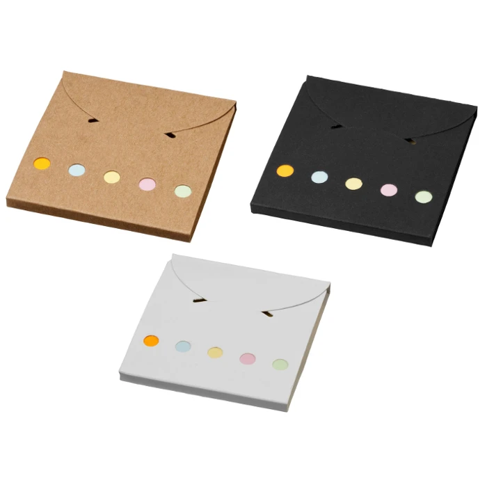 Muistilappulehtiökotelo, jossa 25 sivua keltaisia muistilappuja sekä värikkäitä teippimerkkejä. Kirjekuorimainen kätevä muistilappusetti on helppo postittaa tai jakaa vaikkapa messuilla. Yrityksesi logo tai mainosviesti voidaan painaa kanteen. Pyydä tarjous.Värit: musta, valkoisen, paperinruskeaKoko: 86 x 81 x 6 mm