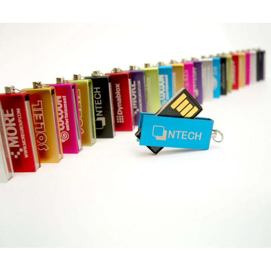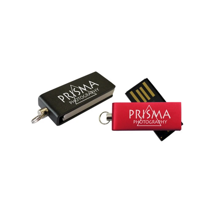 Pieni alumiininen taittuva muistitikku USB Micro Twist. Muistitikku on pölyn ja veden kestävä, joten se sopii kiinnitettäväksi vaikkapa avainlenkkiin tai älypuhelimeesi. Kapasiteetin voit valita 1-64 GB. Useita värivaihtoehtoja. Pyydä tarjous omasta määrästä ja logomerkkauksesta.