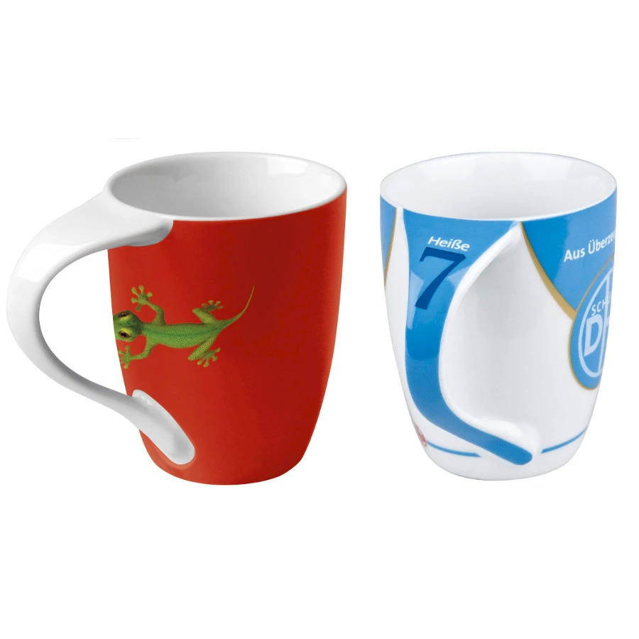 Posliinimuki Caffe New on näyttävä kahvimuki. Nyt voimme tehdä mukeihin erittäin laadukkaan ja upean neliväripainatuksen haluamallasi teemalla ja väreillä. Vahvista yrityksesi ilmettä ainutlaatuisilla astioilla ja yksilöllisellä painatuksella. Muki voidaan painaa moniväripainatuksena. Jos haluat hienovaraisempaa näkyvyyttä logosi voidaan hioa mukin pintaan logohiontana. Painatus voidaan tehdä lähes mihin kohtaan vaan mukia: korvaan, sisäpintaan, ulkopintaan, pohjaan. Materiaali posliinia. Valikoimassamme on useita mukimalleja ja kokoja. Pyydä tarjous omasta toteutuksesta ja lisätietoa mukimalleistamme.