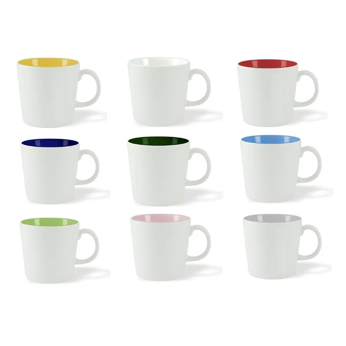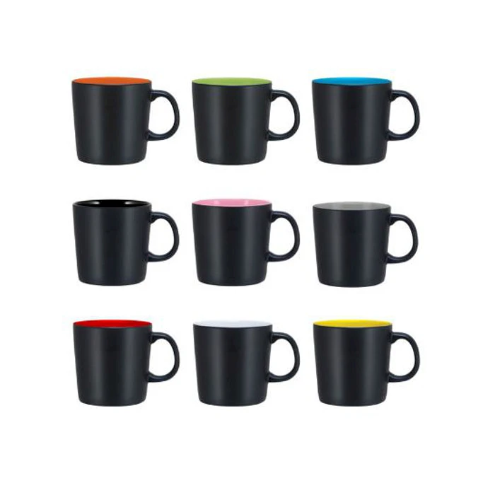 Emma muki värillisellä sisuksella. Saatavana kiiltävällä tai mattapintaisella ulkopinnalla mustana tai valkoisena. Mukin korkeus 80 mm ja halkaisija 80 mm. Tilavuus 2,5 dl. Mukiin on saatavissa erilaisia painatuksia. Pyydä tarjous omasta toteutuksesta.