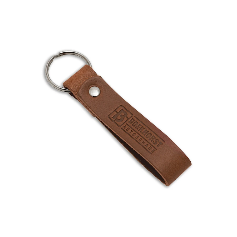 Nahkainen avaimenperä. Valmistettu pehmeästä sileäpintaisesta nahasta. Avaimenperä on kevyt ja mielyttävän tuntuinen kädessä. Logomerkkaus stanssaamalla nahkaan. Avaimenperässä metallirengas. Saatavana luonnon värisenä ja mustana.