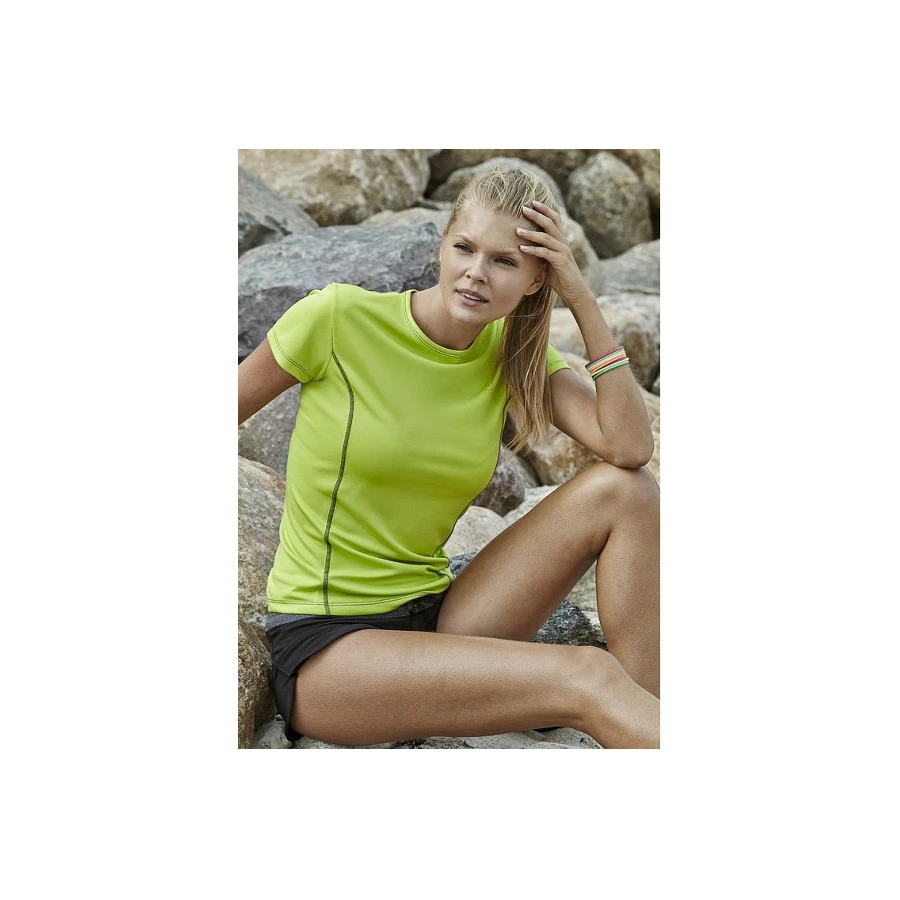Naisten tekninen T-paita on hengittävä ja kosteutta siirtävä T-paita. Paita sopii erinomaisesti aktiiviseen elämäntyyliin. Materiaali siirtää kosteuden iholta ja kuivuu nopeasti. Kevyt kangas antaa mukavuutta liikuntaan. Tyylikkäät päälitikkaukset. Materiaali: 100 % mikropolyesteriä. Paino: 150 g/m² Koot: XS - 3XLPyydä tarjous omasta määrästä ja logomerkkauksesta.