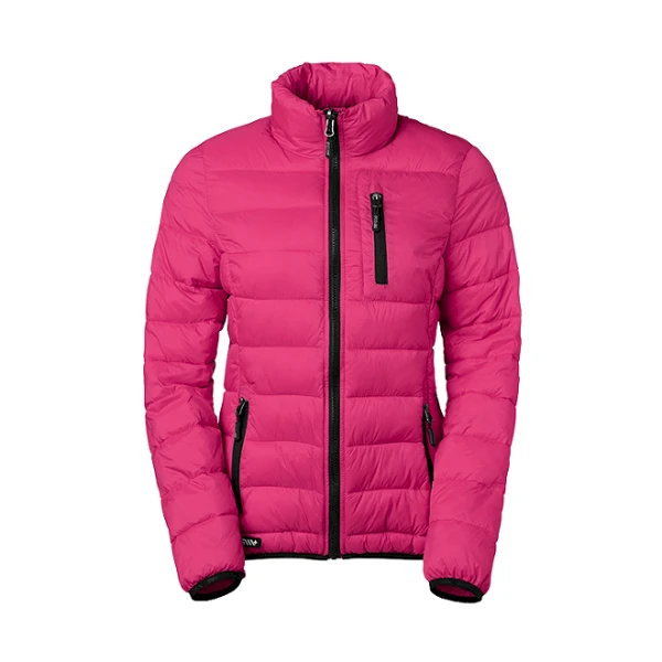 Moderni tekountuvainen kevyt vartalonmyötäinen takki. Takin kapeat kanavat pitävät untuvat paikallaan. Rintatasku ja kaksi sivutaskua. Helmassa ja hihansuissa joustavat nauhat, joissa kuumapainatus. Naisten toppatakki logolla on tyylikäs ja lämmin liikelahja, joka tuo yrityksesi logon näkyville käytännöllisesti ja elegantisti. Saatavilla useita värivaihtoehtoja. Pyydä tarjous omasta määrästä ja logomerkkauksesta.