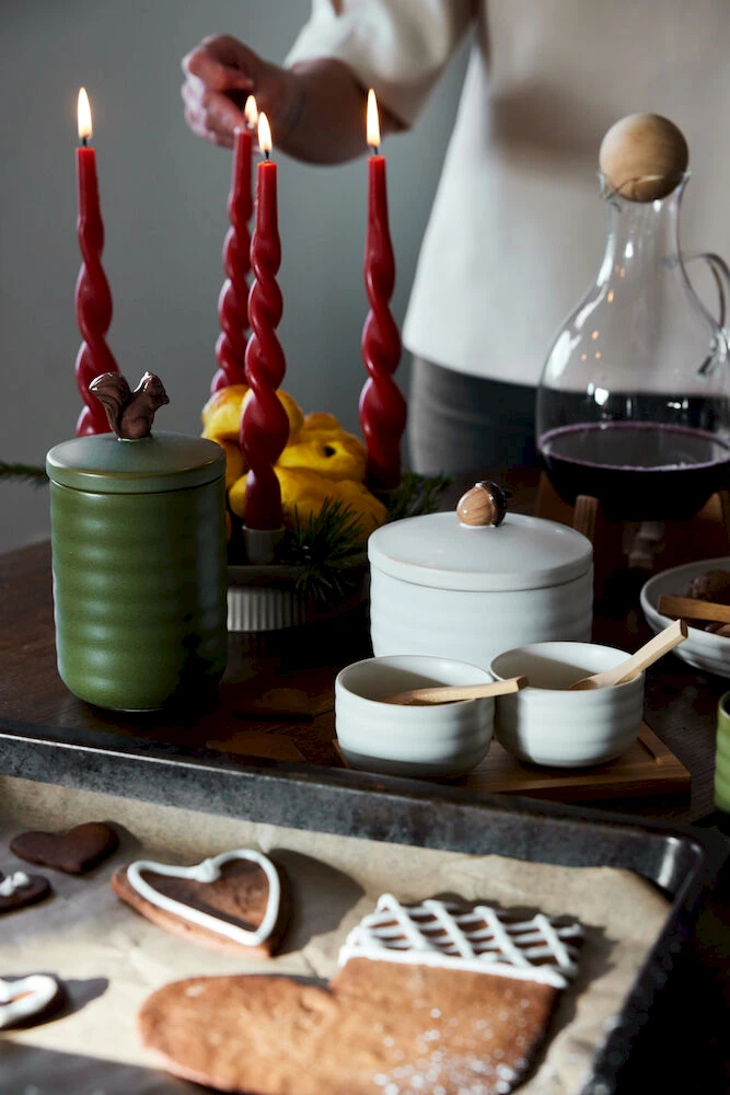 Glögikannulla on pitkä historia, ja nyt olemme jalostaneet siitä modernin version. Olemme laajentaneet sen käyttöä, joten nyt sitä voi käyttää myös tarjoilukannuna kahville, kun joulu on ohi. Kannussa on pyöreä korkki. Kannua pitää lämpimänä bambusta valmistetussa telineessä oleva kynttilä.