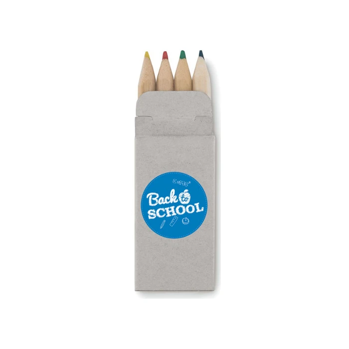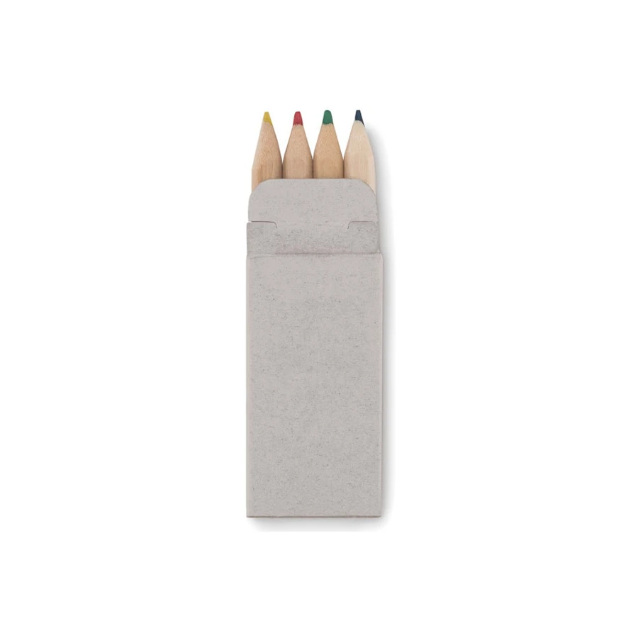 Neljän värin kynärasia. Värikynärasiassa neljä pientä puista värikynää. Käytännöllinen jakotuote vaikkapa messuille. Yrityksesi logo voidaan painaa pahviseen rasiaan. Koko: 3,2 x 0,8 x 6 cm