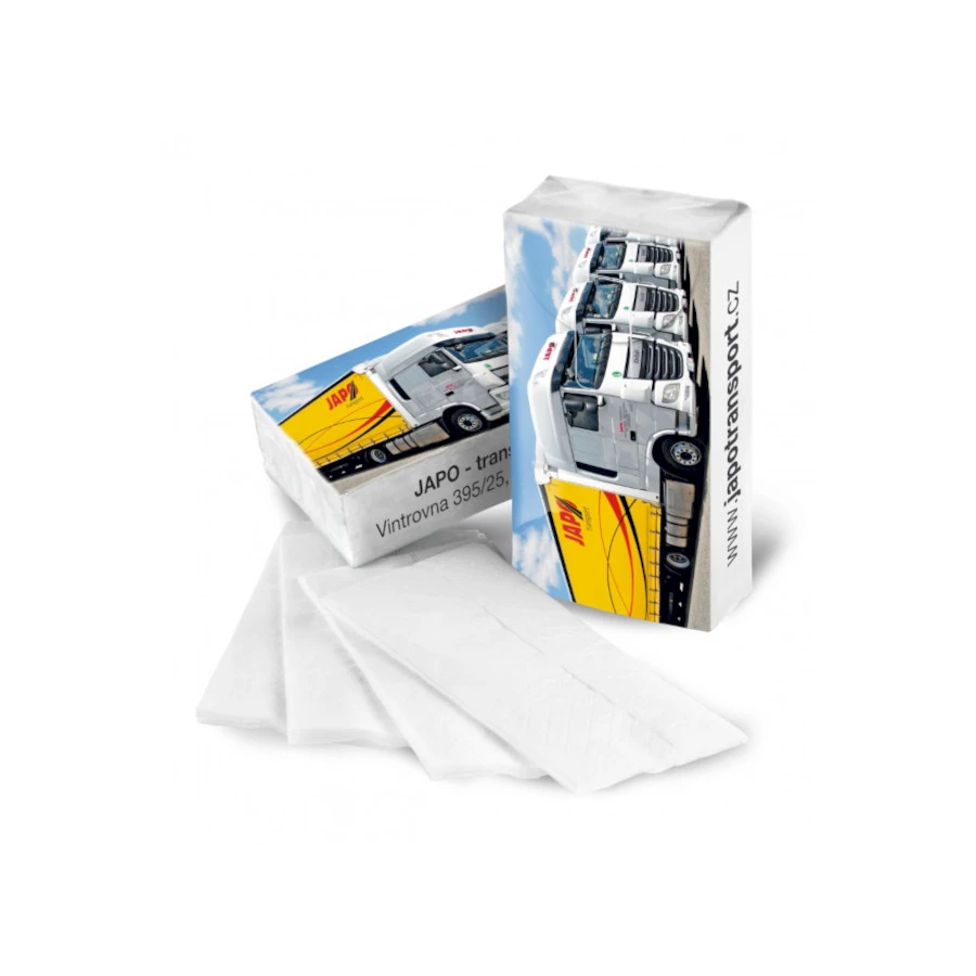 Perinteinen nenäliinapakkaus täysväripainetussa paketissa. Pakkauksessa 10 kpl 3-kerroksista FSC nenäliinaa. Nenäliinan koko 195 x 190 mm. Paperi on FSC sertifioitua. Pakkauksen koko 100x 50x 25 mm. Valmistettu EU:ssa. Tee yrityslahjasta käytännöllinen ja muistettava! Nenäliina painatuksella sopii erinomaisesti asiakkaille ja henkilöstölle arkeen tai tapahtumiin. Pehmeä ja laadukas nenäliina viestii huolenpitoa ja tarjoaa päivittäistä hyötyä. Brändätyn nenäliinan avulla vahvistat yrityksesi näkyvyyttä ja jätät positiivisen muistijäljen jokaiselle vastaanottajalle. Helppo jakaa, tyylikäs ja käytännöllinen – täydellinen liikelahja. Nenäliina minimitilaus 1000 kpl.