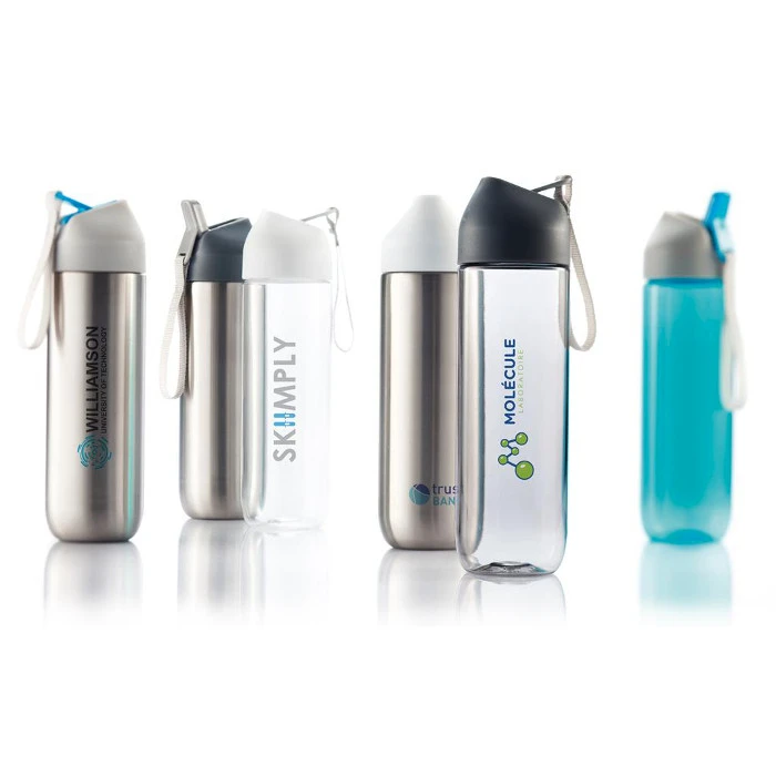 Neva-vesipullo metallia, 500 ml. Tämä juomapullo on ekologinen vaihtoehto taistelussa kertakäyttöisiä pulloja vastaan. Juomapullo on valmistettu ruostumattomata teräksestä, joten se kestää helposti jokapäiväistä käyttöä. Pullossa kätevä kangashihna, josta pulloa voidaan kantaa sekä avata suupala juomista varten.