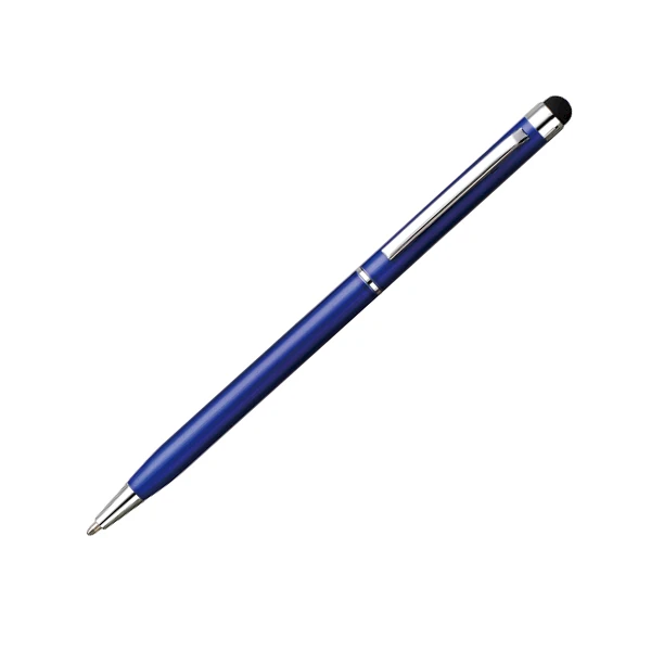 Ohuen ohut kosketusnäyttökynä, joss on pehmustettu muovipää. Kosketusnäyttökynällä käytät helposti kosketusnäyttöjä. Kynän muste sininen. Kynä lahjapakkauksessa.