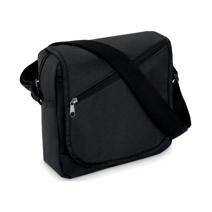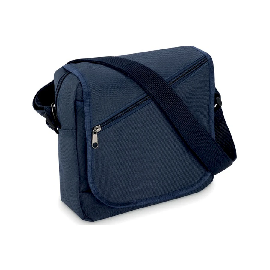 Kätevä olkalaukku Jac. Olkalaukussa vetoketjullinen päätasku ja säädettävä olkahihna. Myös kansiläpässä erillinen vetoketjullinen tasku. Olkalaukun koko 23 x 23 x 7 cm.Väri: sininen, mustaMateriaali: 600 D polyesteriKoko: 23 x 23 x 7 cm.