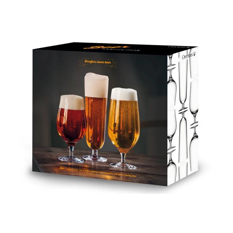 Orreforsin upeat Beer Collection olutlasit. Lahjapakkaus sisältää kolme erilaista olutlasia. Tulppaanin muotoinen Taster-lasi sopii erikoisolueille, pyöreäpesäinen Lager-lasi sopii miedoille lagereille ja pohjahiivaolueille. Pitkä Pils-lasi pitää oluen pitkään kylmänä ja raikkaana. Täydellinen lahja oluenystäville.Orrefors on valmistanut käyttö- ja taidelasia jo vuodesta 1898. Ajaton skandinaavinen eleganssi, innovatiivinen muotoilu sekä aito käsityöläisyys ovat Orreforsin tuotteiden perusta. Orreforsin olutlasit on suunnitellut Erika Lagerbielke. Koko: Beer Taster 47 cl, Beer Pilsner 34 cl, Beer Lager 60 cl. Materiaali: konepesun kestävä kristalli.