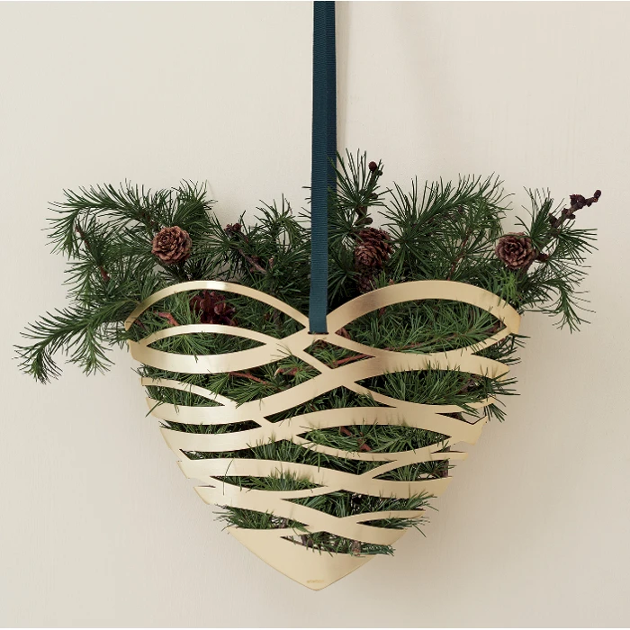 Sydämen muotoinen messinkinen joulukranssi toivottaa sydämellisesti tervetulleeksi ovessa. Pitkäikäinen ja laadukas kranssi toimii myös ihastuttavana joulukoristeena kodin sisällä. Koristele kranssi kuusenoksilla, joulumakeisilla tai muilla jouluaiheisilla tuotteilla ja ripusta koriste oveen tai ikkunaan. Saatavana useita kokoja. Halutessasi voimme koota näyttävän lahjasetin lisäämällä kranssiin esimerkiksi joulumakeisia tai suklaata. Pyydä tarjous omasta toteutuksesta. Materiaali: messinkiKoko: 235 x 190 mm, halkaisija 100 mm