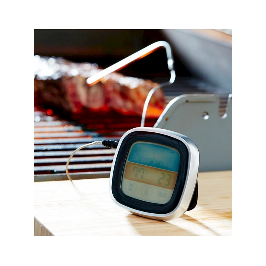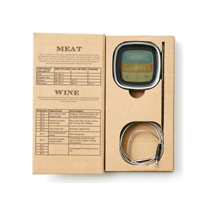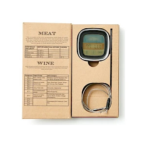 Digitaalinen paistomittari, joka toimii myös munakellona. Pakattu tyylikkääseen kirjalaatikkoon, jonka kanteen on painettu ideaalilämpötilat eri lihoille ja viineille. Paistomittariin on esiasennettu lämpötilat tavallisimmille liha-, kala- ja kanavaihtoehdoille. Mittarin avulla voit myös viilentää viinit oikeaan lämpötilaan. Pakattu lahjalaatikkoon. Helposti postitettava. Logomerkkaus Väri: teräsKoko: 11 x 21,5 x 3,5 cm.