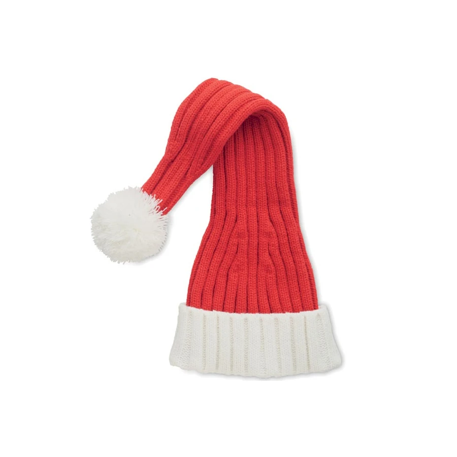 Pitkä neulottu tonttupipo. Pitkä tonttulakki on valmistettu pehmeästä RPET materialista.