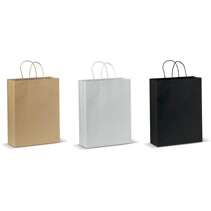 Iso paperikassi, jonka kahvat on tehty käännetystä paperista. Kassin ilme on ekologinen. Soveltuu seminaarin lahjakassiksi tai messukassiksi. Saatavana useita eri kokoja.