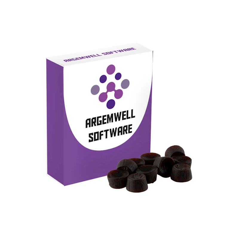 20 g pastillirasia, eri makuvaihtoehtoja. Rasiassa on 20 g karkkia. Valitse useasta eri makuvaihtoehdosta. Karkkirasian kaikki sivut digipainetaan toiveidesi mukaan.