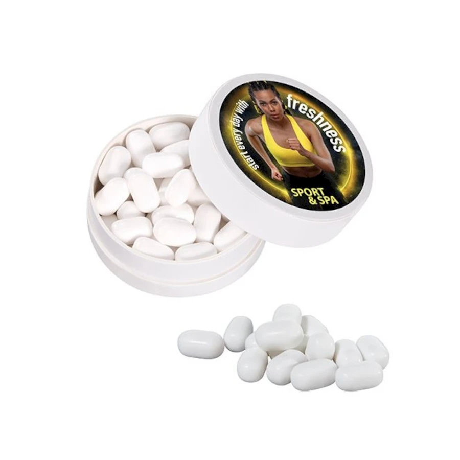 Pieni paperista valmistettu XS taskurasia, jossa sokerittomia piparmintun makuisia pastilleja 15g. Täysin muoviton pastillirasia on valmistettu kokonaan FSC® sertifioidusta paperista. Paperinen pastillirasia on ekologinen ja kierrätettävä. Todellinen hittituote urheiluun liittyvissä kampanjoissa ja ulkotapahtumissa.