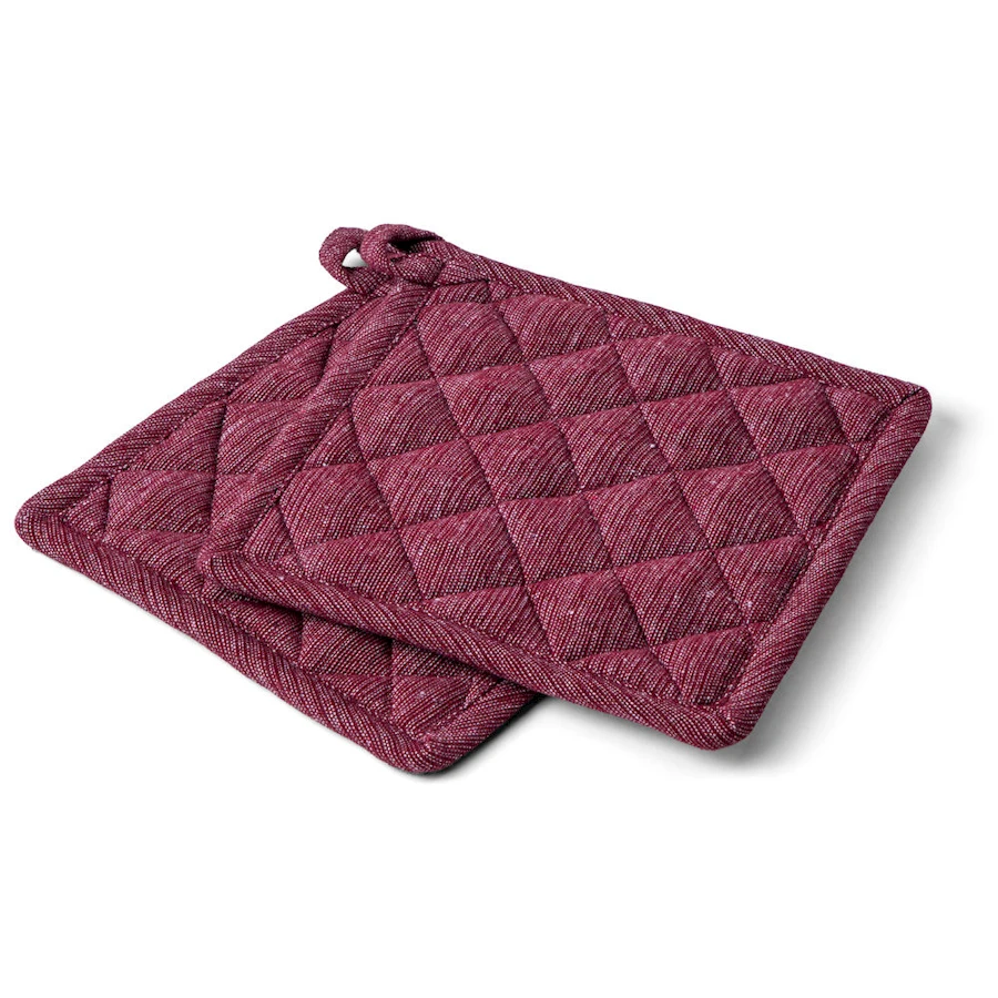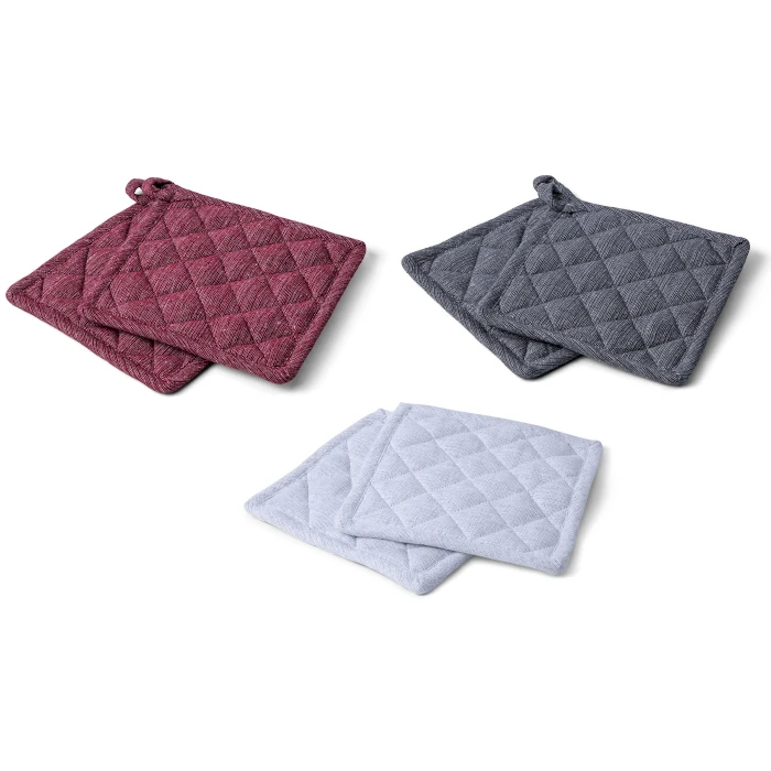 Patalappu Recycle kierrätyspuuvillasta. Käytännöllinen ja kaunis patalappu sopii vaikka juhlapöydän pannunaluseksi. Pakkauksessa 2 kpl patalappua. Yhdistä saman sarjan muihin kodinteksiileihin ja saat tyylikkään kokonaisuuden keittiöön. Värit: viininpunainen, v.harmaa, t.harmaaMateriaali: 70 % kierrätyspuuvilla/ 30 % polyesteriKoko: 20 x 20 cm
