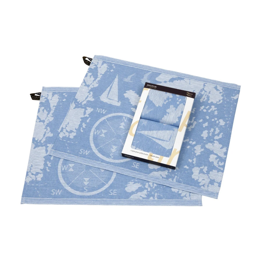 Saunaan sopivat merihenkiset Saaristo-sarjan pefletit. Lahjapakkauksessa 2 kpl pellavaista peflettiä/laudeliinaa. Suomi on tunnettu upeasta saaristostaan. Monelle veneily on olennainen osa vapaa-ajan viettoa. Tämä kuosi on saanut innoituksensa saaristomeren kartasta ja sen laivareiteistä. Vaikka tämän kartan opastuksella saaristoon ei kannata lähteä, toivottavasti se vie silti ajatukset ja sinut seikkailemaan merellisiin maisemiin ja raikkaaseen merituuleen. Suunnittelija Tuula Wilèn.