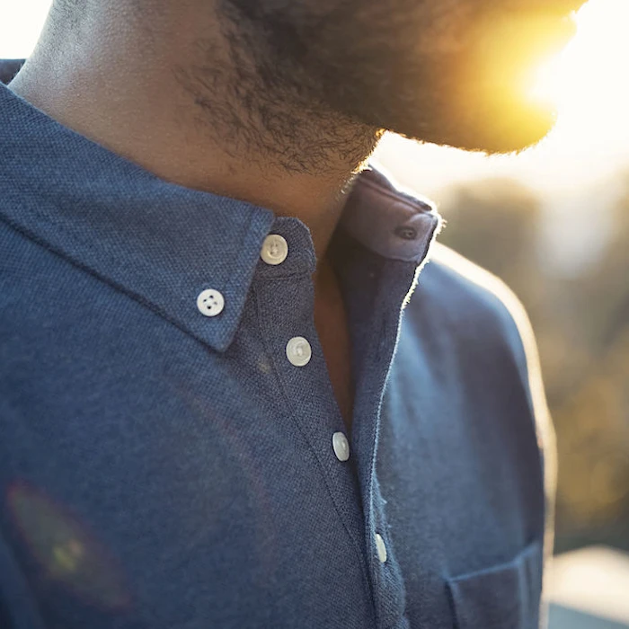 Pikeepaita, jossa button down -kaulus. Kontrastiväri kauluksen sisällä ja hihansuissa.