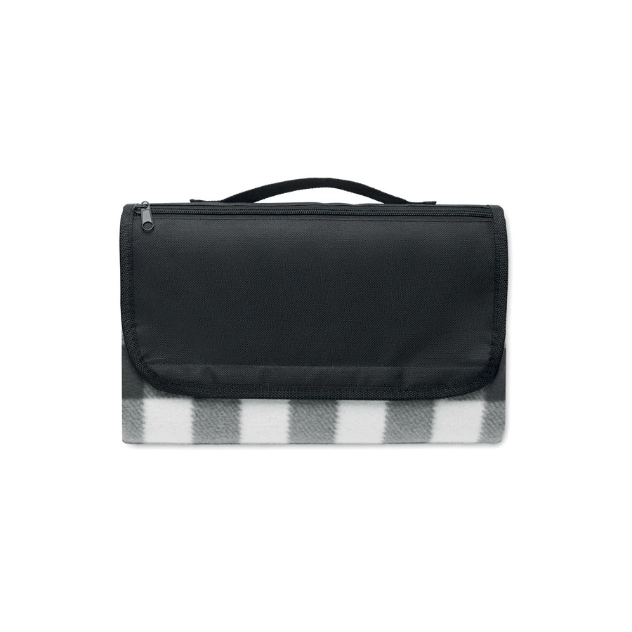 Taitettava RPET 150 gr/m² polarfleece piknik-peitto, jonka kääntöpuoli on vedenkestäväksi pinnoitettua PEVA. Peitossa vetoketjullinen etutasku ja lyhyt kantohihna.
