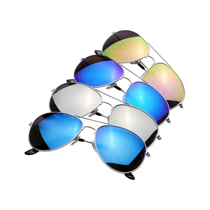 Klassiset Pilotti Aurinkolasit. Aurinkolaseissa trendikkäät värilliset peililasit. Mukana mikrokuituinen säilytyspussi, jota voit käyttää puhdistusliinana. EN ISO 12312-1- ja UV 400 -standardin mukaiset linssit luokitellaan luokkaan 3.
