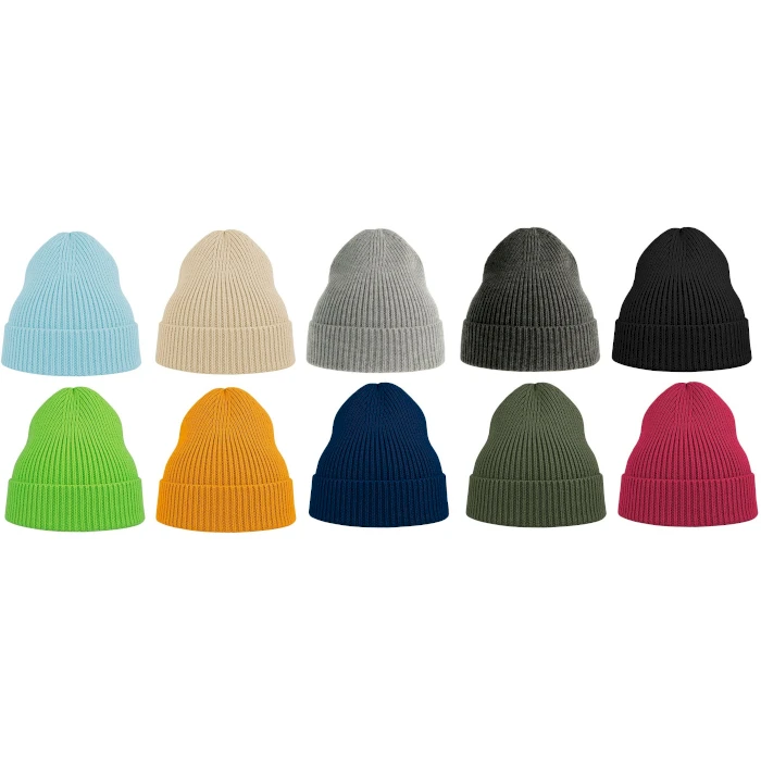 Pipo Andy käännettävällä reunalla. Ekologinen Andy rib-pipo on 50 % kierrätyspolyesteriä / 50 % akryylia. Ribbipipossa käännettävä reuna ja muotoon neulotut yksityiskohdat. Sertifikaatit: Global Recycled Standard. Saat pipot yrityksesi logolla brodeerattuna tai merkattuna.