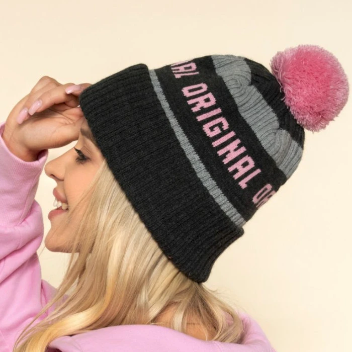 Paksu Original Pompom Pipo 3-värisellä neulonnalla ja logomerkkauksella. Myös muita merkkausvaihtoehtoa on saatavana kuin neulonta, jolla merkkaus tehdään pääsääntöisesti. Pipot valmistetaan EU:ssa.