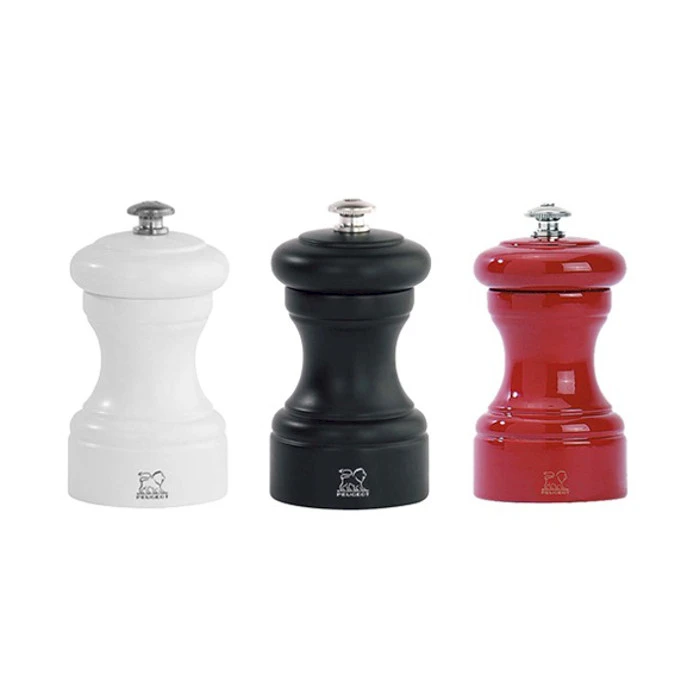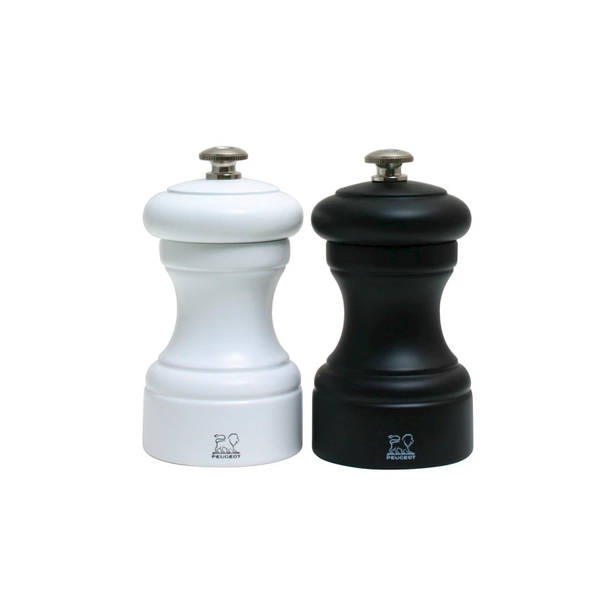 Peugeot-pippurimyllyt, 2 kpl, valkoinen ja musta. Peugeot pippurimyllyjen koneisto on valmistettu ruostumattomasta teräksestä. Mylly on varustettu Peugeotin patentoidulla karkeudensäätömekanismilla, jonka avulla säädät helposti jauhettavan pippurin kokoa. Peugeot pippuri- ja suolamyllyjen koneistolla on elinikäinen takuu. Saatavilla koot: 12 cm, 18 cm, 28 cm, 30 cm. Pyydä tarjous omasta määrästä ja logomerkkauksesta.
