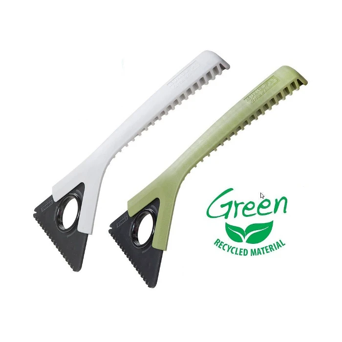 Pitkävartinen kotimainen ympäristöystävällinen jääkaavin. Laadukas ja tukeva Suomessa valmistettu kolmiomuotoinen jääraappa irrottaa tiukankin jään auton ikkunoista. Jääraapassa on kuusi raaputuspintaa, jäähampaat sekä ura pyyhkijänsulkien puhdistamiseen. Mid-Is Green jääraapan raappaosa on valmistettu 100 % ylijäämämateriaalista. Raapoissa ja harjaksissa kierrätysmateriaalin osuus on 100 %. Varsi on 70 % kierrätettyä uudelleenmurskattua muovia. Saat yrityksesi logopainatuksen jääraappaan. Pyydä tarjous.