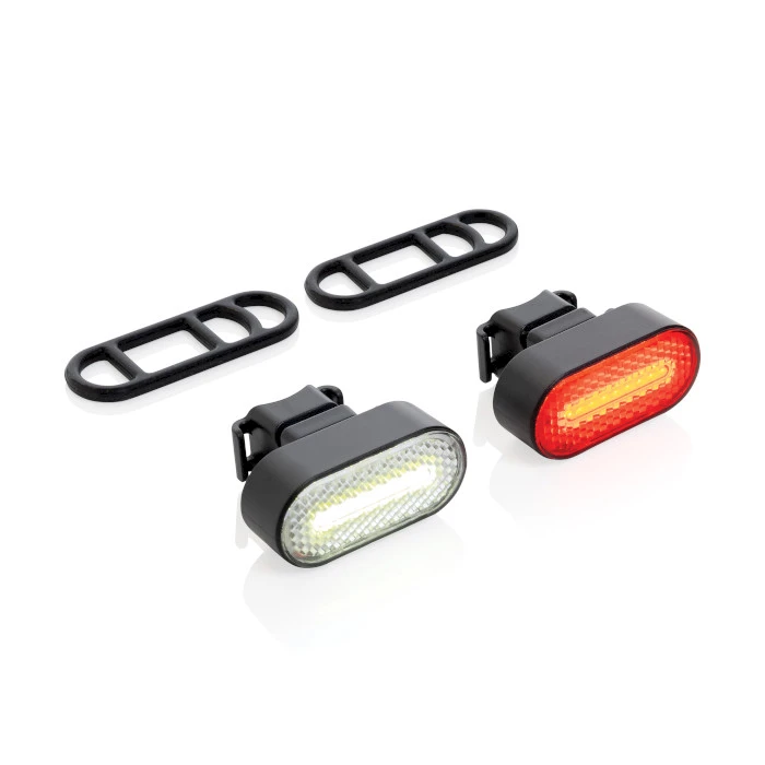 Ladattava polkupyörän valosarja kierrätysmateriaalista. Setti sisältää etu- ja takavalon polkupyörään. Polkupyöränvalot on valmistettu kierrätetystä ABS:stä. Valot latautuvat tunnissa C-tyypin kaapelilla ja niiden käyttöaika on noin 2,5 tuntia. Lampuissa on viisi valotilaa. IPX-vedenpitävät.
