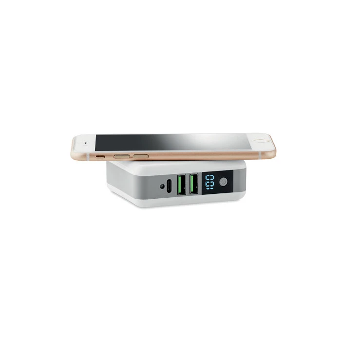 Langaton 2.4 pikalataus power bank 6700 mAh näyttö matkasovittimella. Sisältää 4 vaihdettavaa sähköpistoketta. Latausasema Power Bank on tehokas vara-akku, langaton latur ja adapteri. Void ladata sillä laitettasi suoraan pistorasiasta tai langattomasti missä tahansa. Yhteensopiva uusimpien älypuhelimien kanssa: androidit, Iphone 8, 8S ja X.